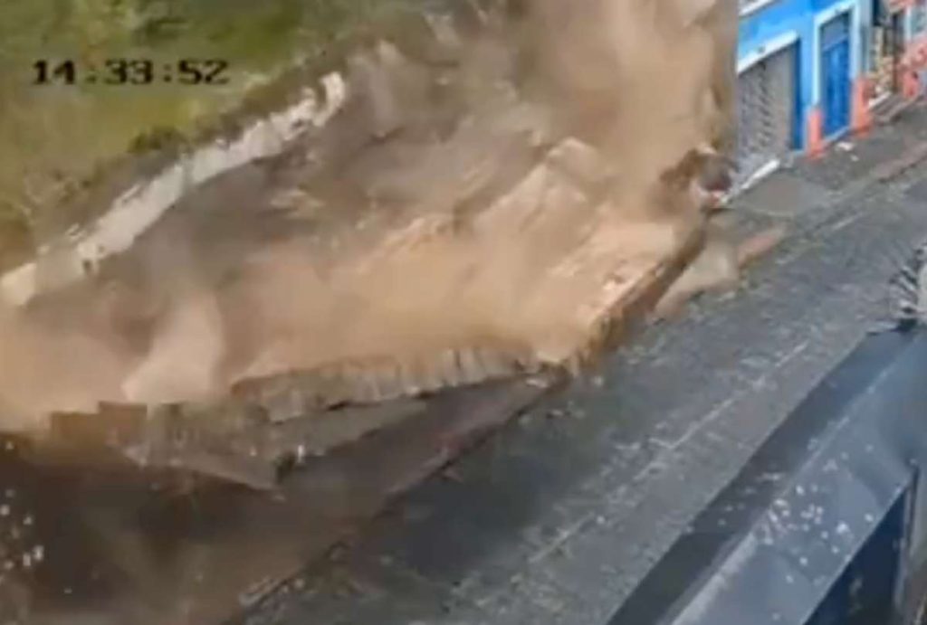 En redes sociales circula un video del preciso momento en que el muro se desploma.