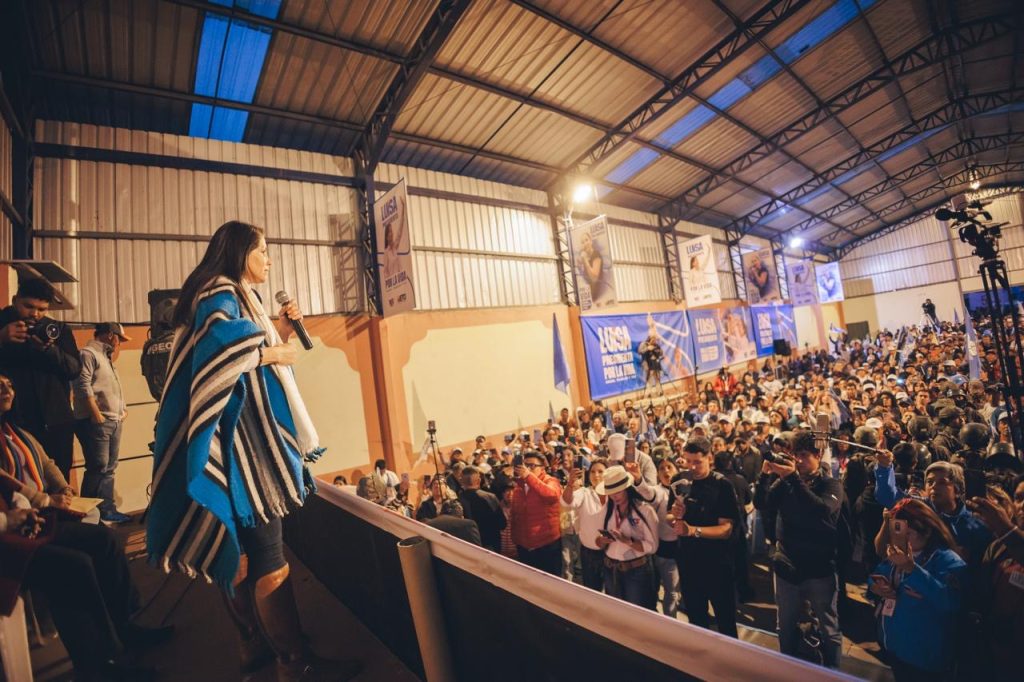 La presidenciable recorrió la avenida principal del cantón, siendo recibida con muestras de cariño y apoyo por parte de los habitantes de la zona, así como representantes de sectores sociales, pueblos y nacionalidades, quienes se unieron en un solo grito: «¡Luisa Presidenta!».