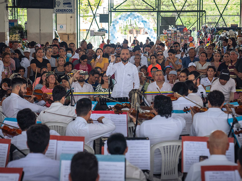 Julia Mejía llegó desde el centro de la ciudad para ver el concierto. “Excelente presentación, es la primera vez que veo a la orquesta. A la Alcaldía que sigan así trabajando para el pueblo”. El mercado de Sauces 9 se ha convertido en un icono del norte de la ciudad por la gastronomía que ofrece, lo que incluso genera que los recorridos turísticos que se ofrecen a los extranjeros incluya una visita a este centro de abastos.