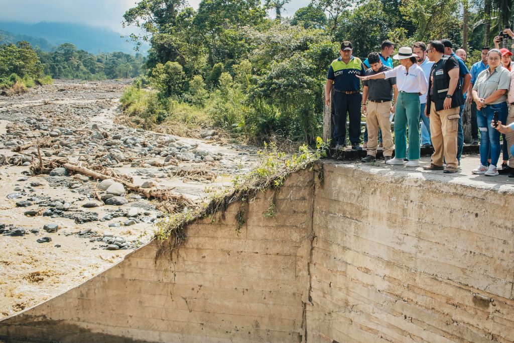 La prefecta Marcela Aguiñaga llegó hasta el lugar junto al alcalde de Bucay, Mauricio Rosado, para inspeccionar las labores. “Llegamos a atender la emergencia. Aquí tenemos un socavamiento muy importante, que prácticamente se ha llevado la vía y pone en riesgo la estabilidad del puente”, detalló la ejecutiva guayasense.